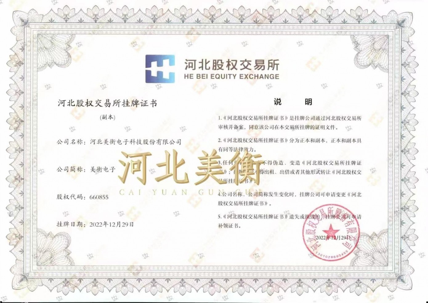 河北美衡電子科技股份有限公司是石家莊衡器行業知名企業,國家級高新技術企業,河北省科技型企業,河北省創新型企業,河北上市企業,代碼660855 。自成立以來秉承誠信為本,質量為上的經營理念,為客戶提供質優的產品和服務。